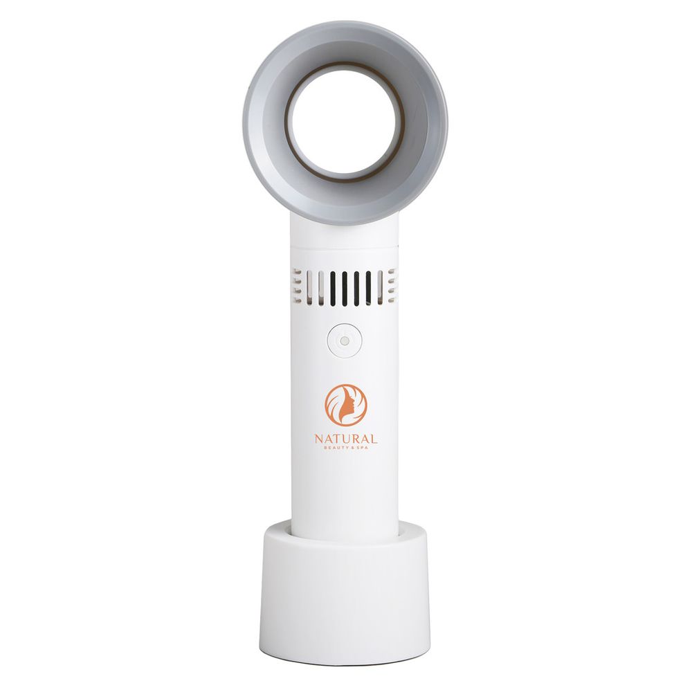 Enjoy a quiet cool. This sleek, minimalist personal fan is bladeless, reducing noise for a more gentle, breezy experience. It features three fan speeds for customized cooling, and it’s rechargeable and conveniently portable for continued use anytime, anywhere. Perfect for outdoor events, offices, and travel.